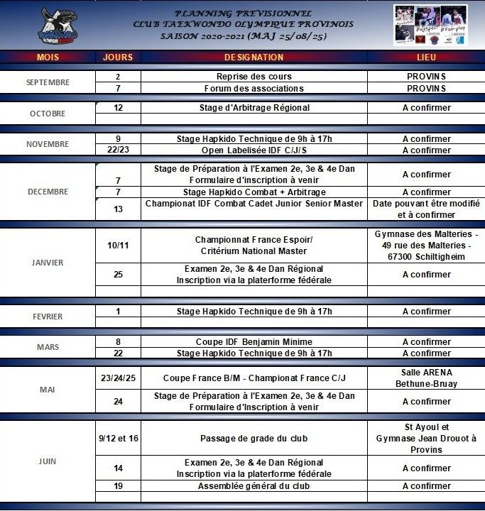 Calendrier FFTDA